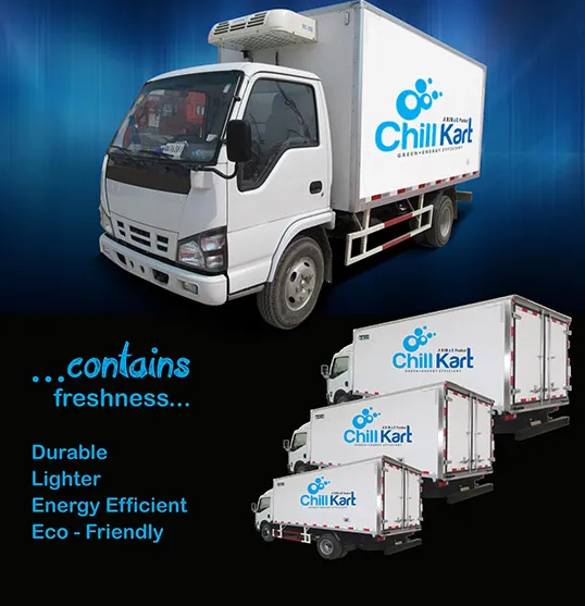 To tackle these challenges, Rinac has innovatively designed ChillKart, a greener, economical and more efficient alternative to reefer trucks! This eutectic refrigerated truck requires NO FUEL or ENERGY to refrigerate and instead maintains cold temperatures during transportation with eutectic plates placed inside the insulated truck body. Hence, ChillKart reduces your annual expense significantly by almost 50% when compared to reefer trucks!